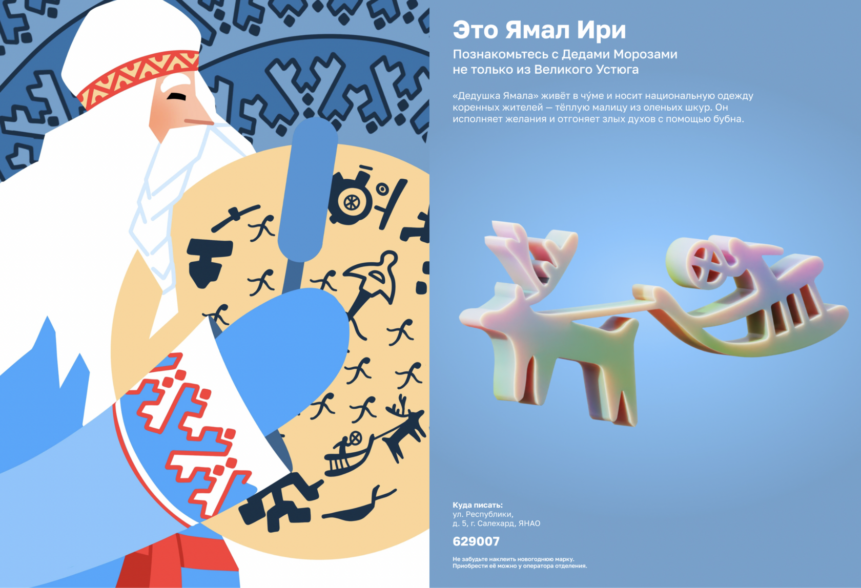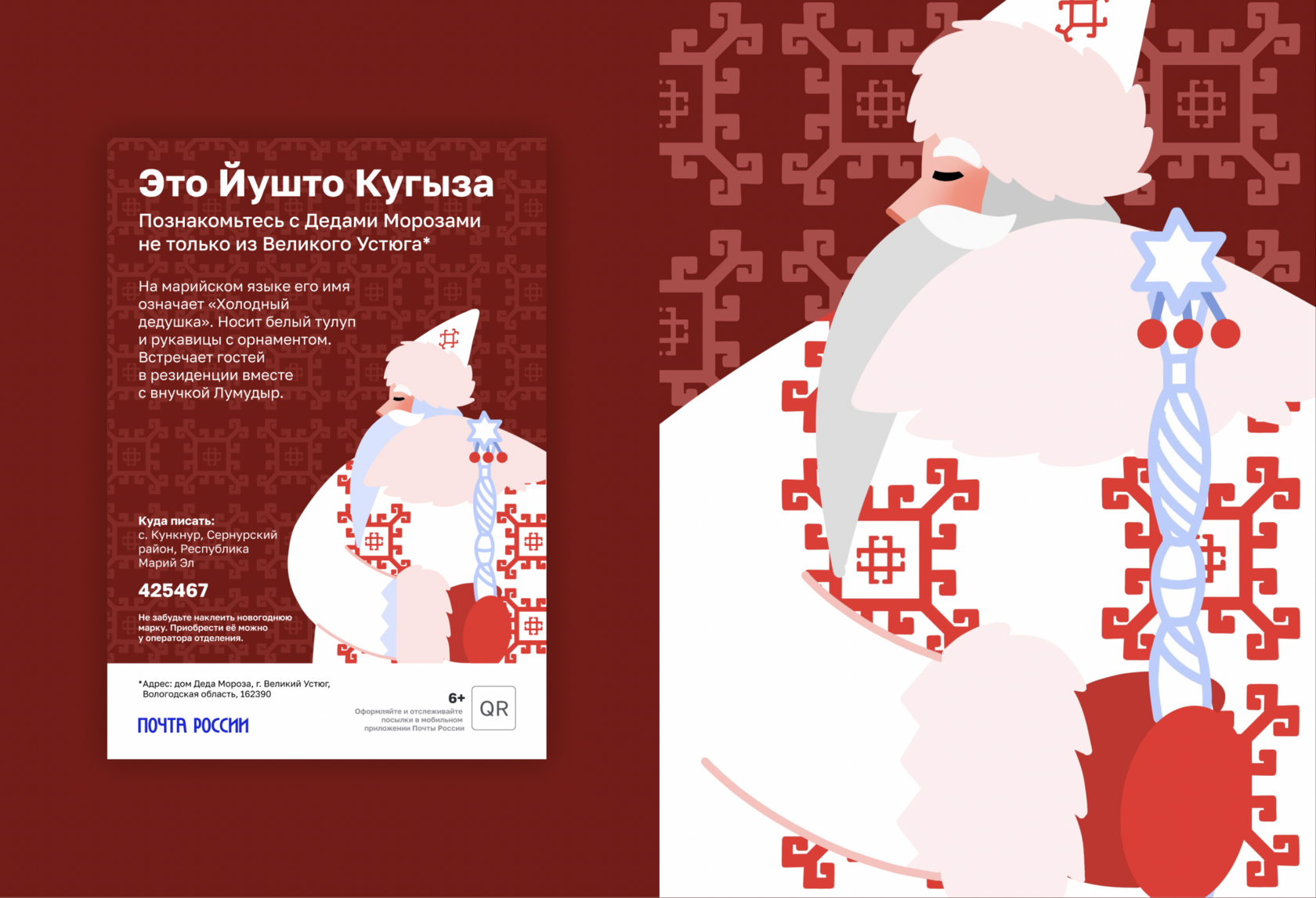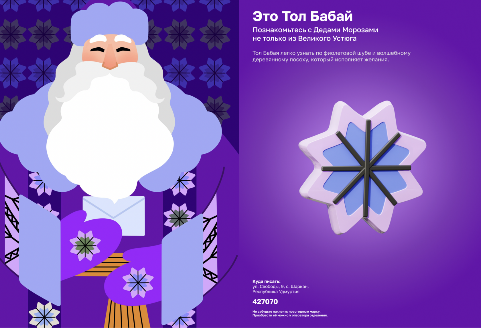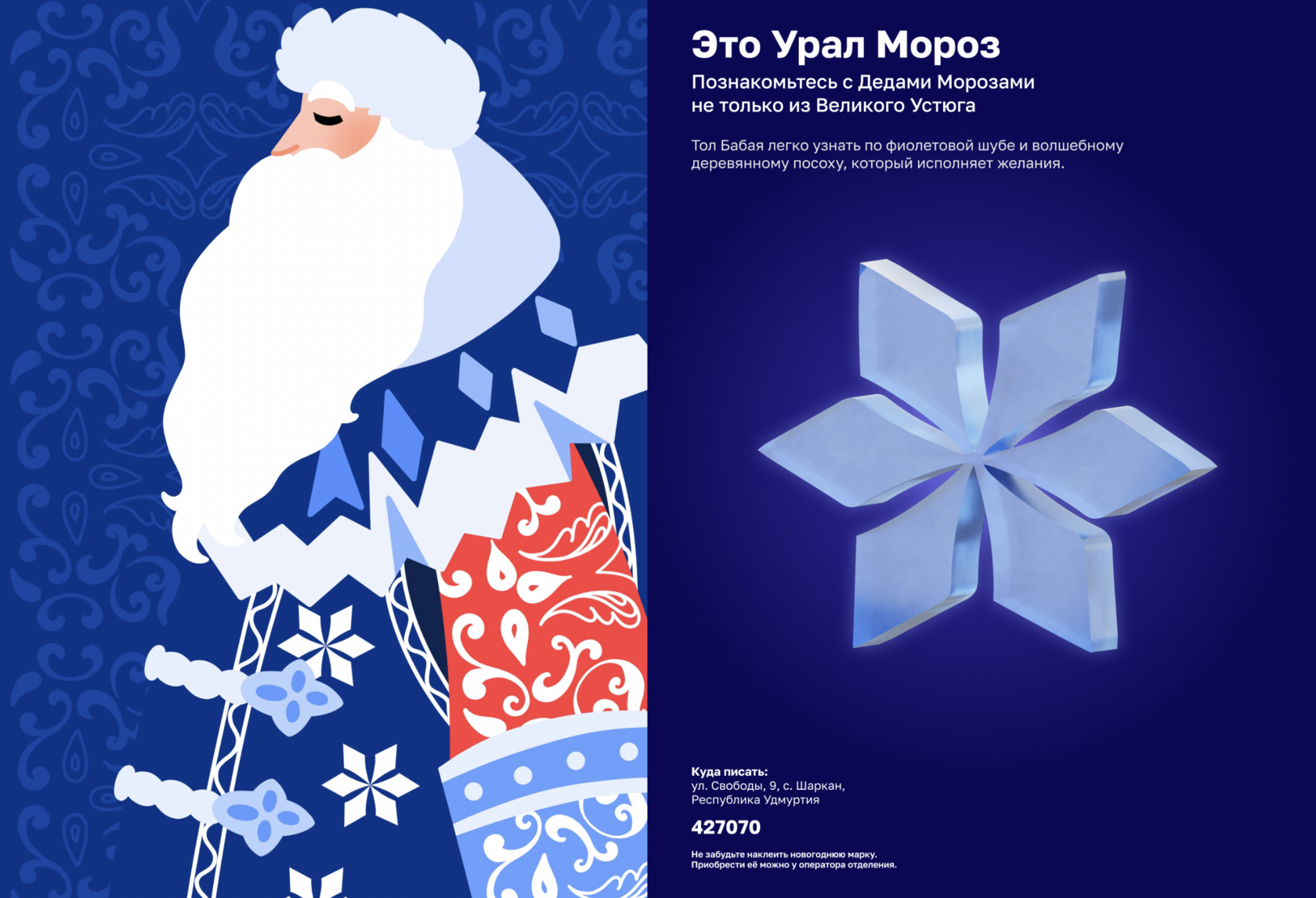 Новогодний спецпроект Почты России: «Познакомьтесь с Дедами Морозами не только из Великого Устюга». Задача проекта повысить узнаваемость Бренда через продукт «отправка открыток»