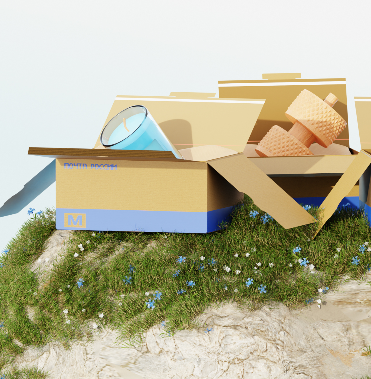 Для создания визуальной концепции мы проанализировали, из чего состоят подарки на витрине нашего маркетплейса. Материалы для изготовления подарков ручной работы легли в основу визуального стиля проекта. Сюжет анимированного ролика тоже об этом — путь изделия от кусочка глины или парафина до готового изделия, которое с помощью доставки Почтой сделает вас счастливее в один из праздничных дней этого года (а может, и не только праздничных).